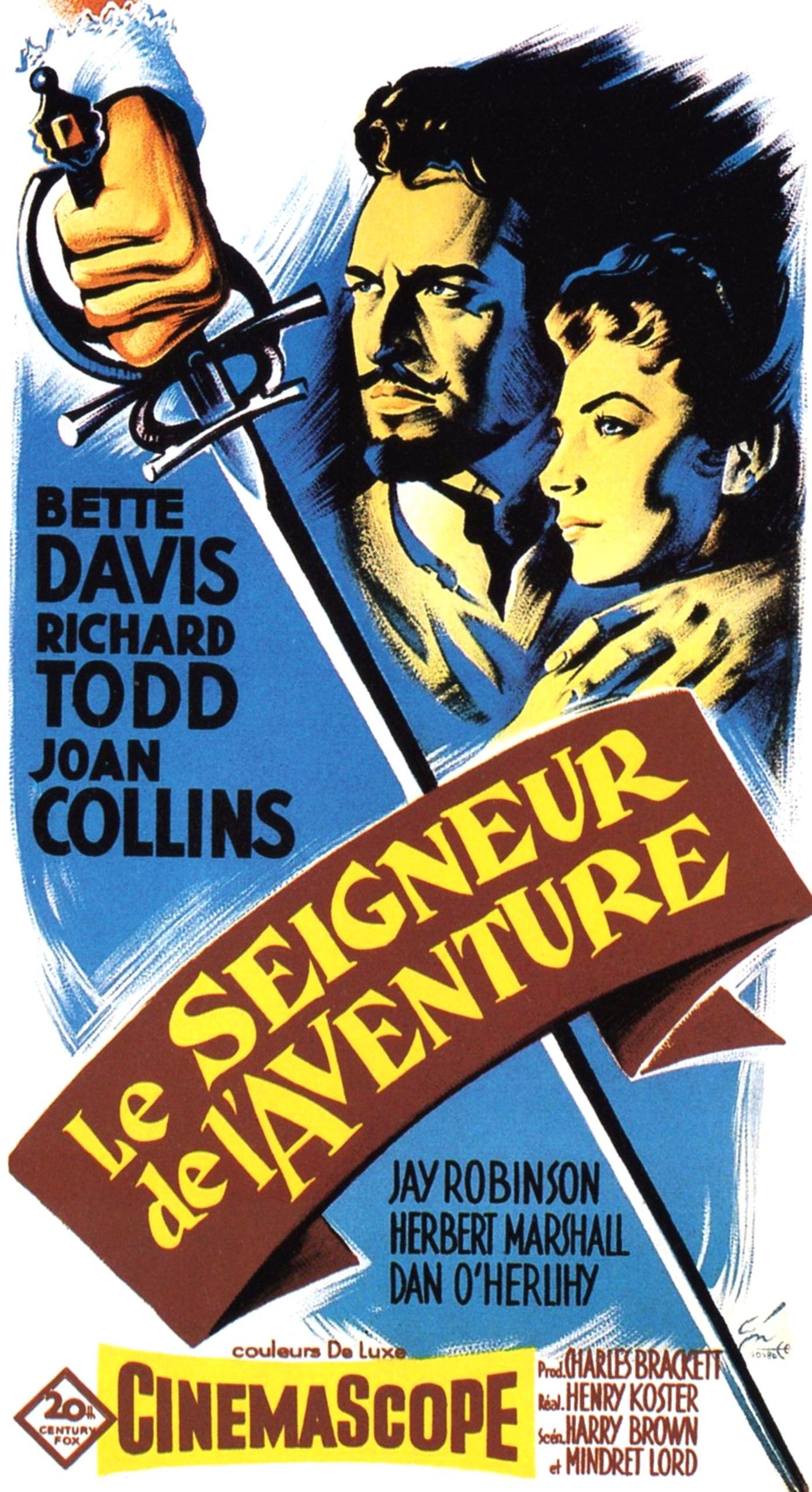 Le Seigneur de l’Aventure relate les efforts de Walter Raleigh, courageux explorateur, pour convaincre la Reine d’Angleterre de financer son projet d’explorer le Nouveau Monde, tout autant que l’amour non partagé de la régente pour lui et la jalousie qu’elle va ressentir quand il tombe amoureux d’une dame de la Cour et l’épouse en secret. Réalisateur américain oublié aujourd’hui, auteur de la comédie Harvey et d’un de segments de La Sarabande des Pantins, Henry Koster est aux commandes de ce drame historique au scénario terne, aux dialogues pompeux et à l’intrigue franchement peu attirante. On peut certes se consoler avec les costumes d’époque (joliment mis en valeur) sans trouver ailleurs matière à se réjouir ou à s’exalter. En effet, la réalisation pataude de Koster ne rend pas service à un traitement déjà empoisonné par un bavardage intempestif et un aspect théâtral bien poussiéreux. Les intrigues amoureuses entre Raleigh, sa dulcinée Beth et la Reine nous passent carrément au dessus du ciboulot et même les images en Technicolor flamboyant n’impriment guère nos rétines. Le salut vient presque de la distribution et encore, sans grand enthousiasme!