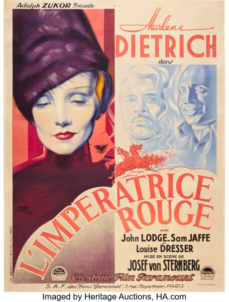 Sans doute qu’aucune collaboration artistique entre un metteur en scène et une actrice n’aura été aussi fructueuse et aussi marquante (en Amérique tout du moins) que celle qui unissait Josef Von Sternberg et Marlène Dietrich. Mais leur sixième film commun, L’Impératrice Rouge, supplante tous les autres par la ferveur de sa réalisation, l’hallucinant mariage entre la forme et le fond, la beauté de son style baroque. L’histoire vraie de Catherine II de Russie se voit contée par Sternberg sous l’angle du portrait féminin évoluant au fil de sa vie: d’abord princesse apeurée, puis épouse apprenant à jongler avec les règles de la Cour, séductrice conquérante le coeur de l’armée, enfin souveraine juchée sur son cheval en uniforme de hussard blanc. Filmé dans des décors qui semblent l’emprisonner et anéantir son libre arbitre, ce personnage hors du commun s’émancipe non seulement du joug conjugal, mais surtout acquiert sa totale indépendance d’esprit et de corps face à un système cannibale. Les costumes de Travis Benton, absolument splendides, ne sont pas là uniquement pour faire briller Catherine, ils sont les piliers essentiels de la narration. La séquence du mariage, une des plus belles, ressemble à s’y méprendre à une cérémonie funèbre, dans un lieu saturé de statues grotesques, d’objets agressifs, d’espace restreints: Sternberg signifie ainsi la mise au tombeau de son héroïne. Sa vision de la Cour de Russie, décapante, oscille entre faste, ironie, gigantisme et alimente son oeil perçant de réalisateur perfectionniste.