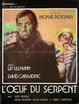 David Carradine, spécialisé dans le genre thriller ou western violents, trouve ici un rôle plus complexe à défendre et s’en sort plutôt très bien. Face à lui, l’actrice muse de l’auteur de Persona, Liv Ullman, imprime son jeu dense. Le reste du casting comprend Heinz Bennent, acteur allemand qui sera dans Le Dernier Métro, inquiétant médecin des âmes, ainsi que Gert Froebe dans la peau du commissaire de police peu commode. Sinueux et sombre, L’Oeuf du Serpent tend à mettre en garde contre le totalitarisme gagnant progressivement les foules silencieuses et la seule thématique chère à Bergman que l’on retrouve dans certains de ses autres films est l’impuissance face au malheur engloutissant ses personnages. Le pessimisme final ne fait que renforcer cette impression de fatalité étouffante.